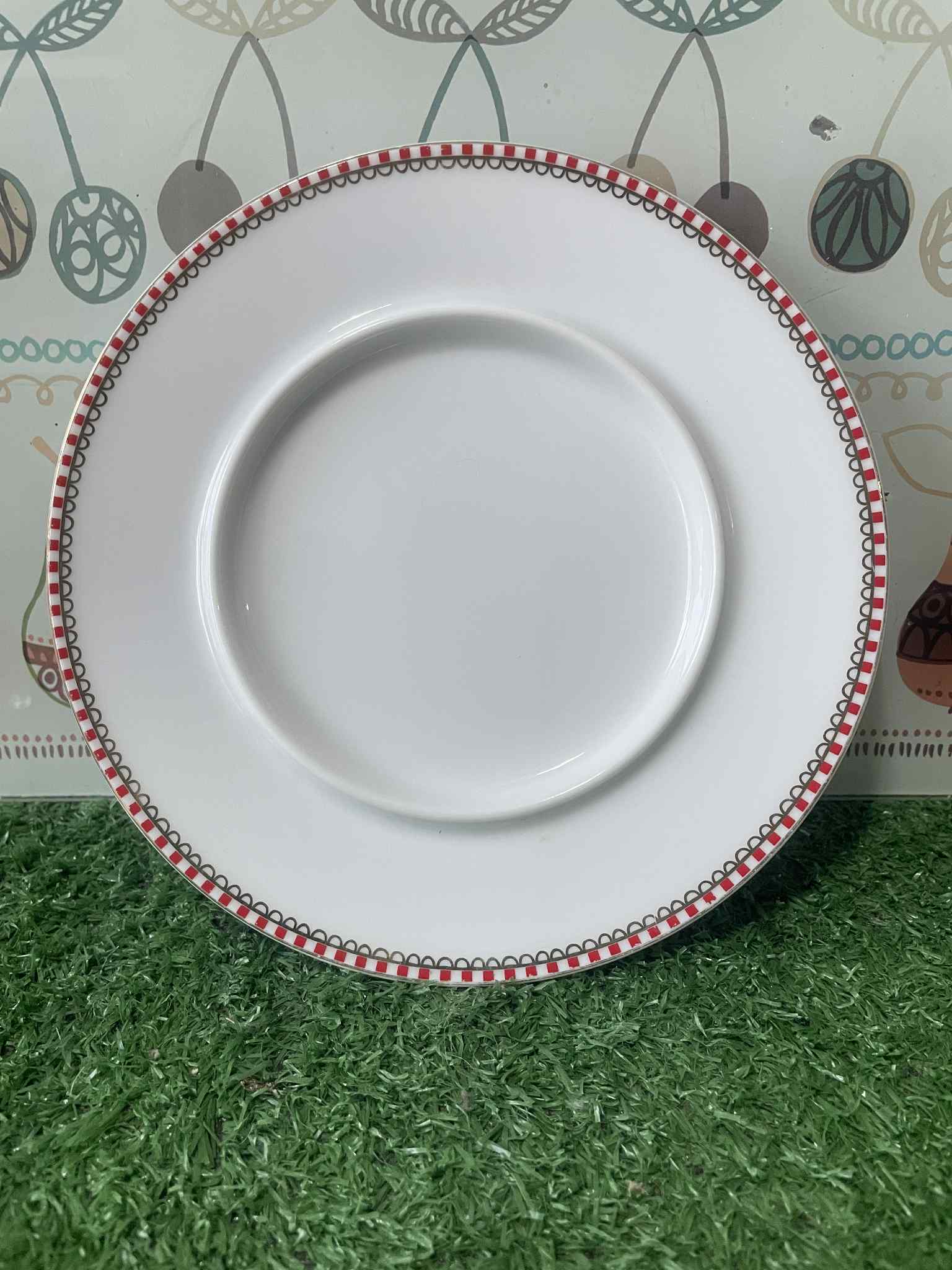 จานขอบลายตารางหมากรุกสีแดงบนพื้นหลังสีขาว ของ Woodmere