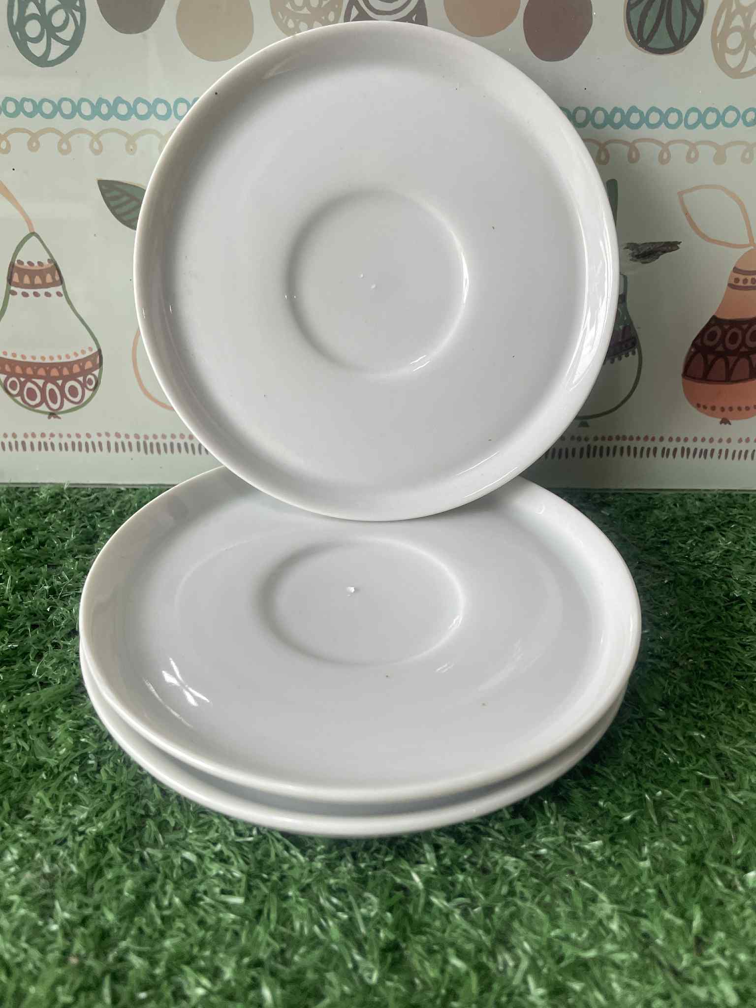 จานรองแก้วเซรามิกสีขาว
