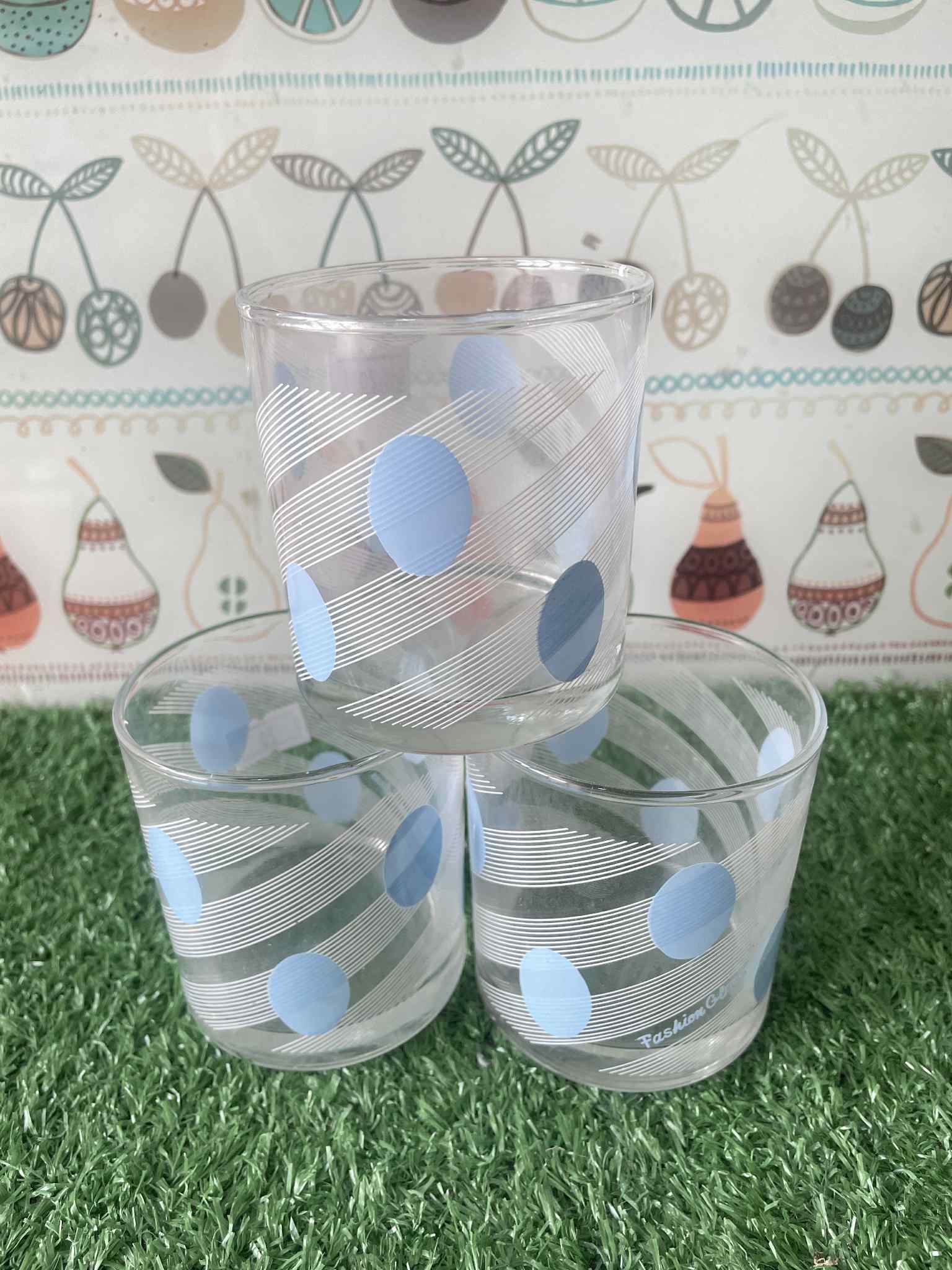 ชุดแก้วน้ำสะสมลายจุดสีฟ้าและเส้นสีขาว