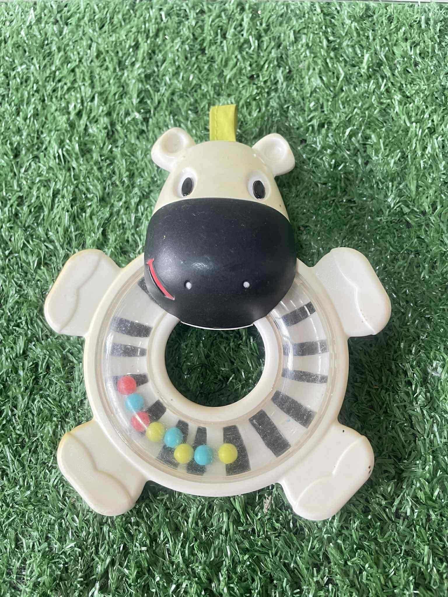 - มีลูกปัดสีสันสดใสอยู่ด้านในห่วงสำหรับเขย่าเพื่อสร้างเสียง