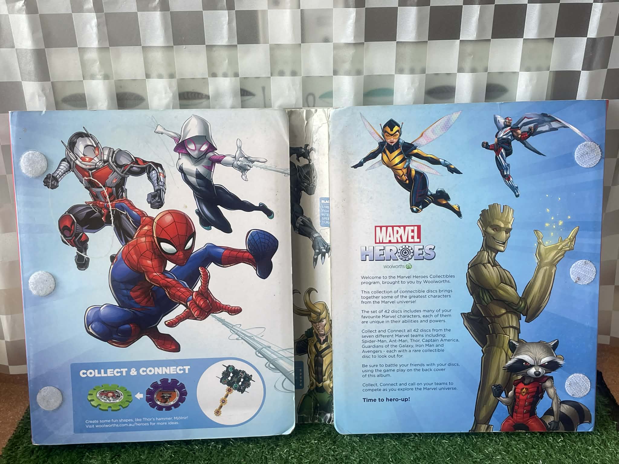 สมุดภาพหรืออัลบั้มสะสมการ์ด/สติกเกอร์ Marvel Heroes (หมายเหตุ แผ่นการ์ดขาด 9 ชิ้น)