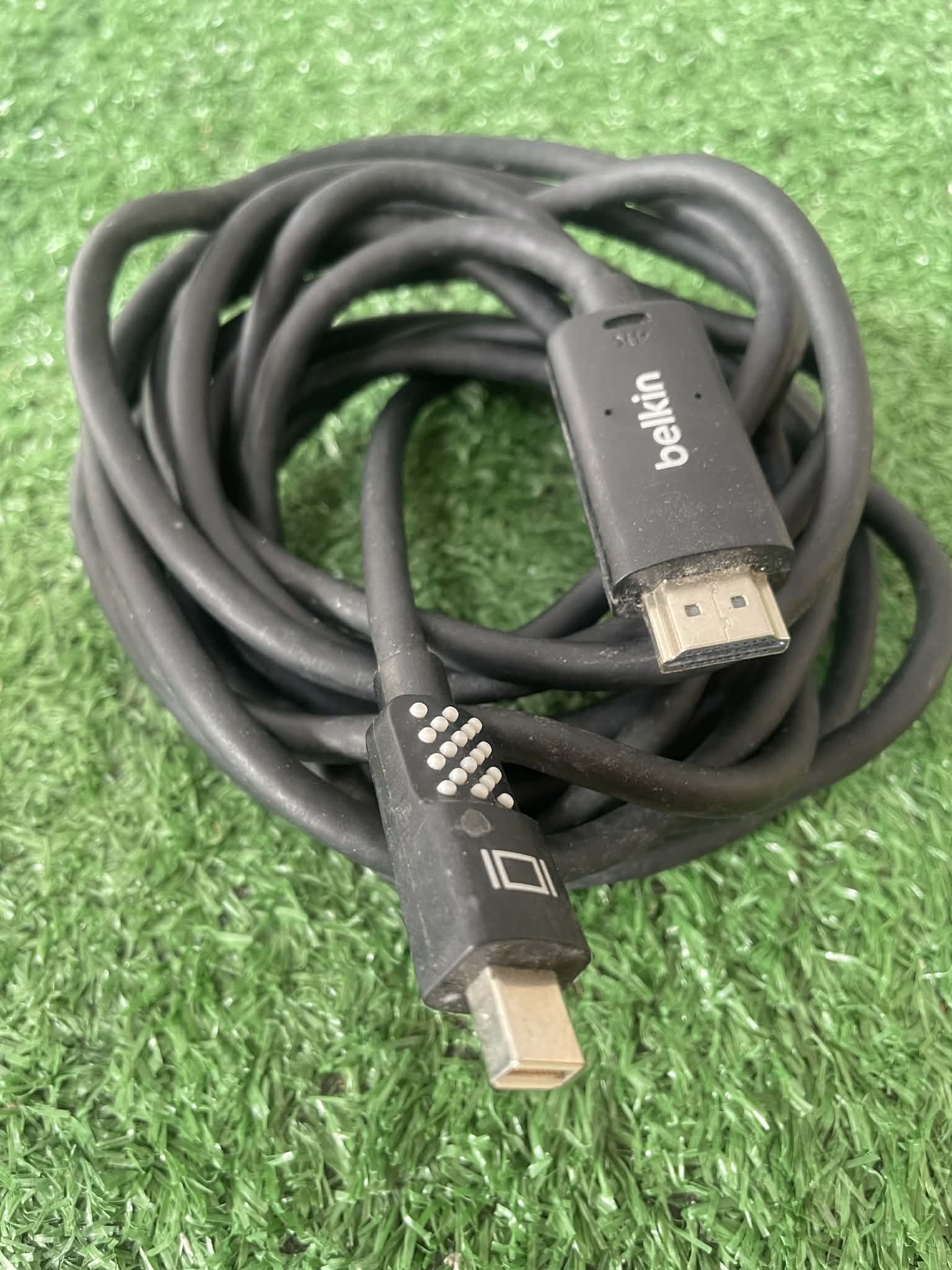 สายเคเบิลในรูปภาพคือ Belkin Mini DisplayPort to HDMI ซึ่งใช้สำหรับเชื่อมต่ออุปกรณ์ที่มีพอร์ต Mini DisplayPort เข้ากับจอภาพหรือโทรทัศน์ที่มีพอร์ต HDMI