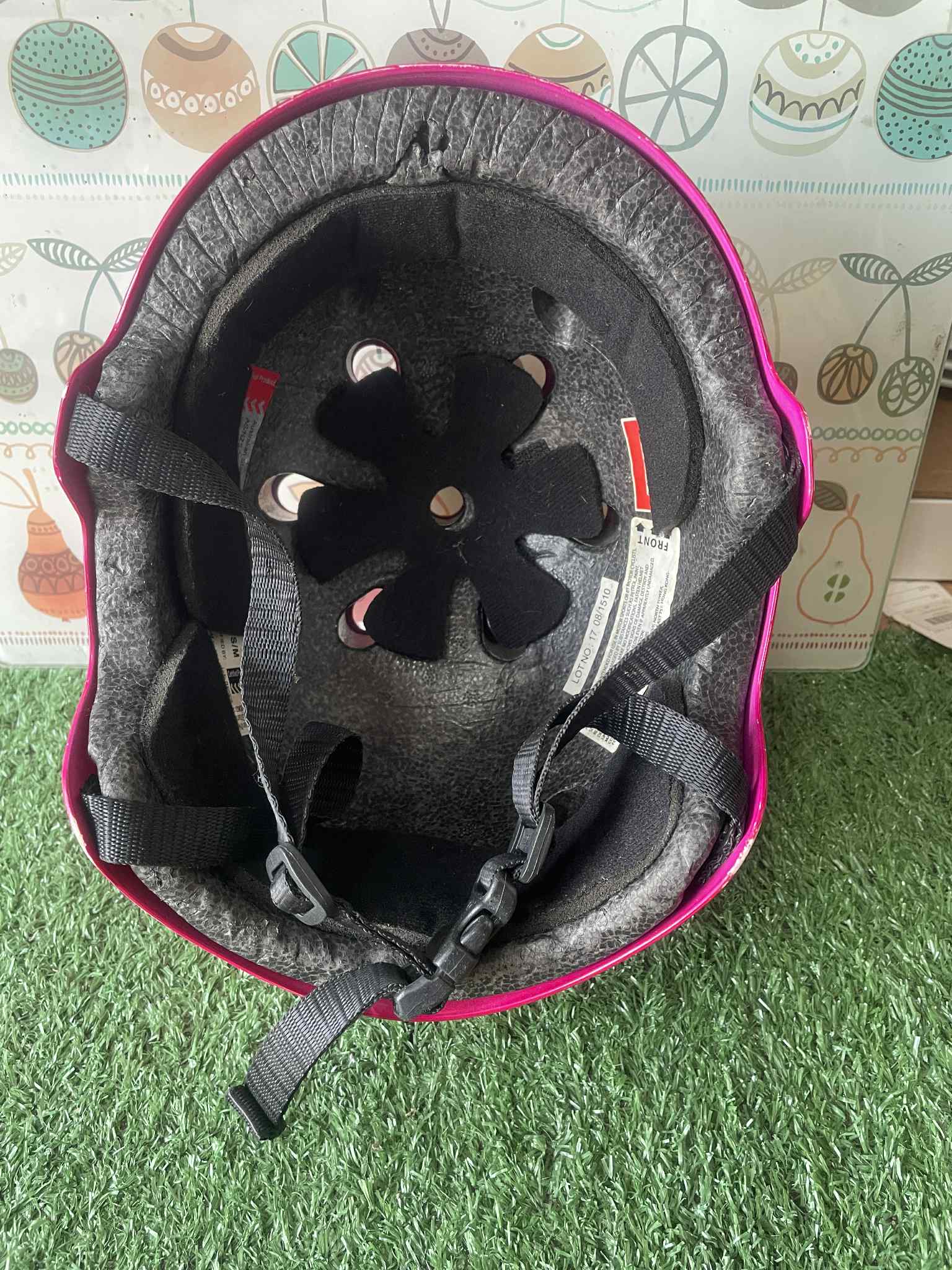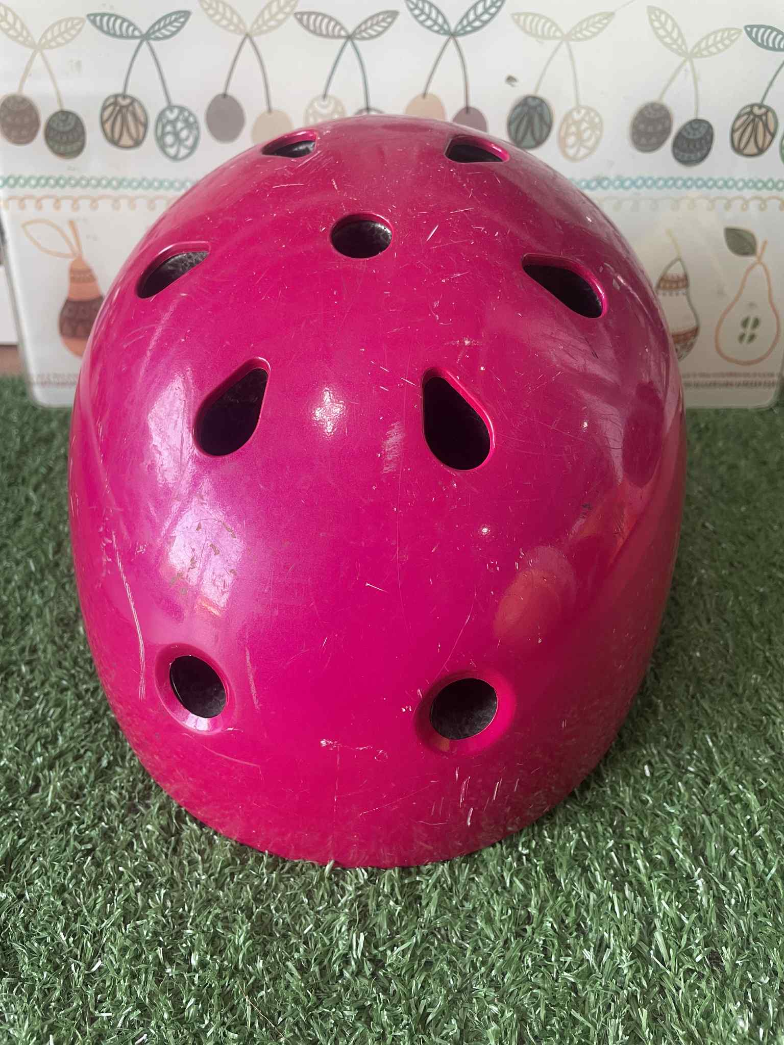 หมวกกันน็อกสีชมพูสำหรับเล่นสเก็ตหรือสกู๊ตเตอร์