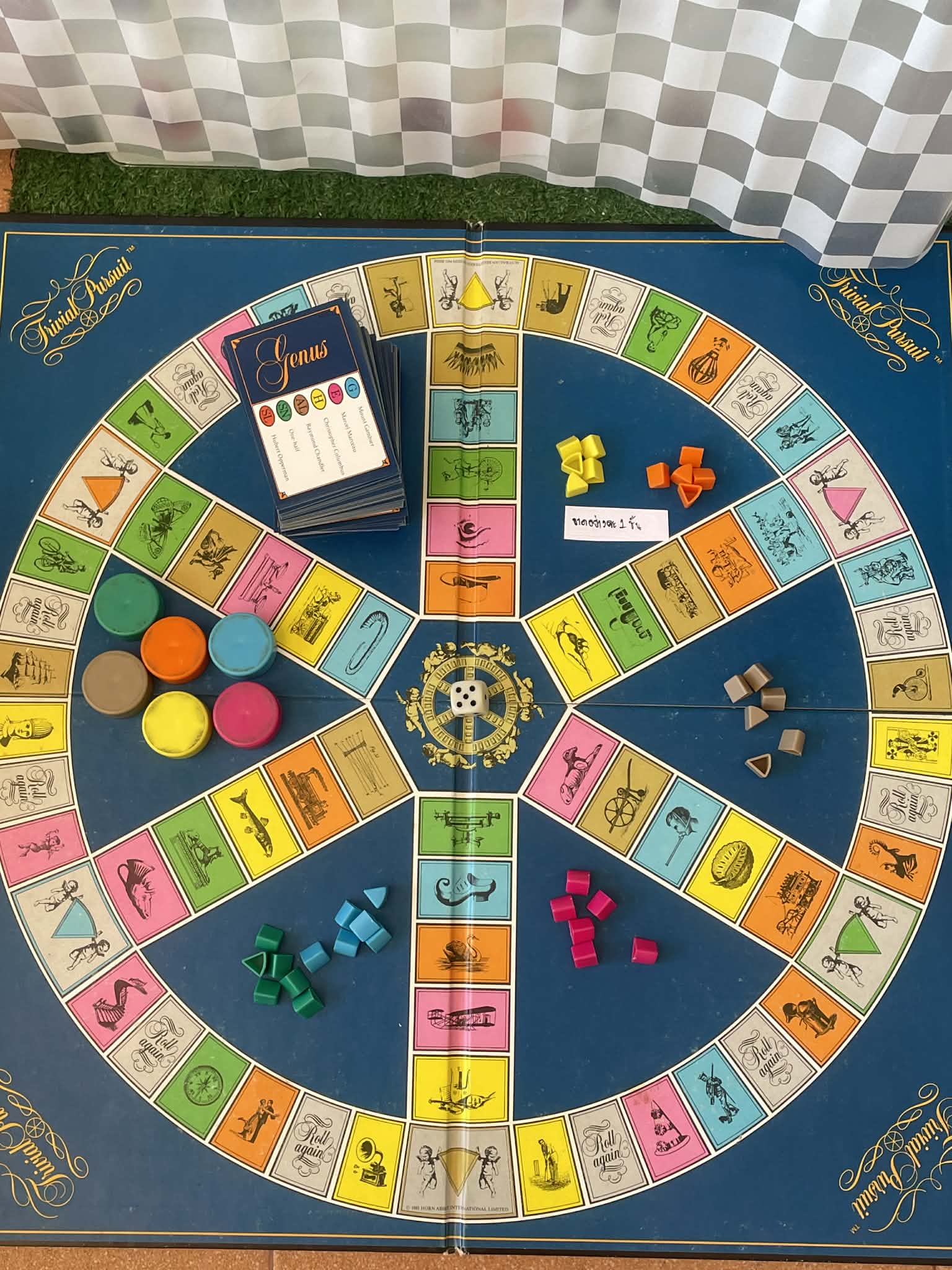เกมกระดาน Trivial Pursuit Master Game Genus Edition ซึ่งเป็นเกมทายปัญหาที่ได้รับความนิยมอย่างมากตั้งแต่ช่วงทศวรรษที่ 80 (หมายเหตุ อุปกรณ์ไม่ครบตามที่แจ้ง)