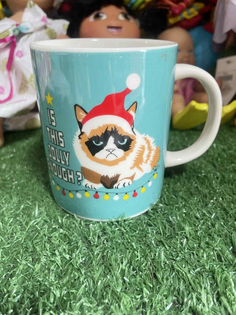 แก้วมัคลาย Grumpy Cat สวมหมวกซานต้าพร้อมข้อความ “IS THIS JOLLY ENOUGH?