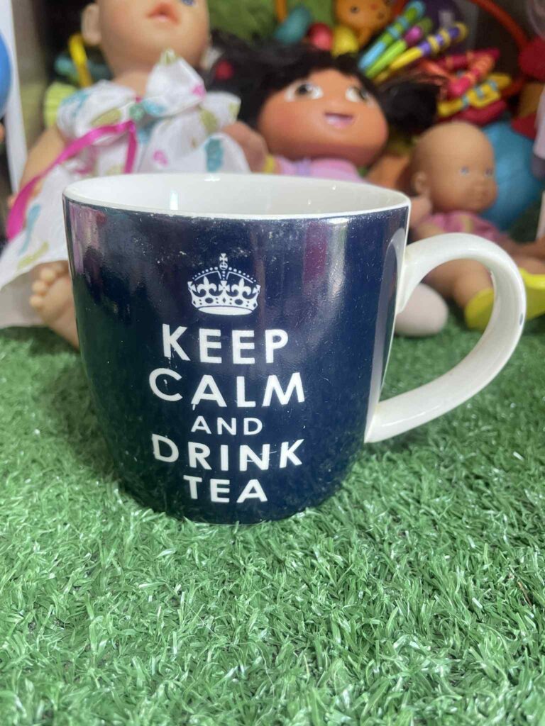 แก้วมัคลาย “Keep Calm and Drink Tea” สีน้ำเงินเข้มขอบขาว