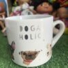 แก้วเซรามิกสีขาวที่มีรูปไดโนเสาร์สเตโกซอรัสสีดำและข้อความ “techni”